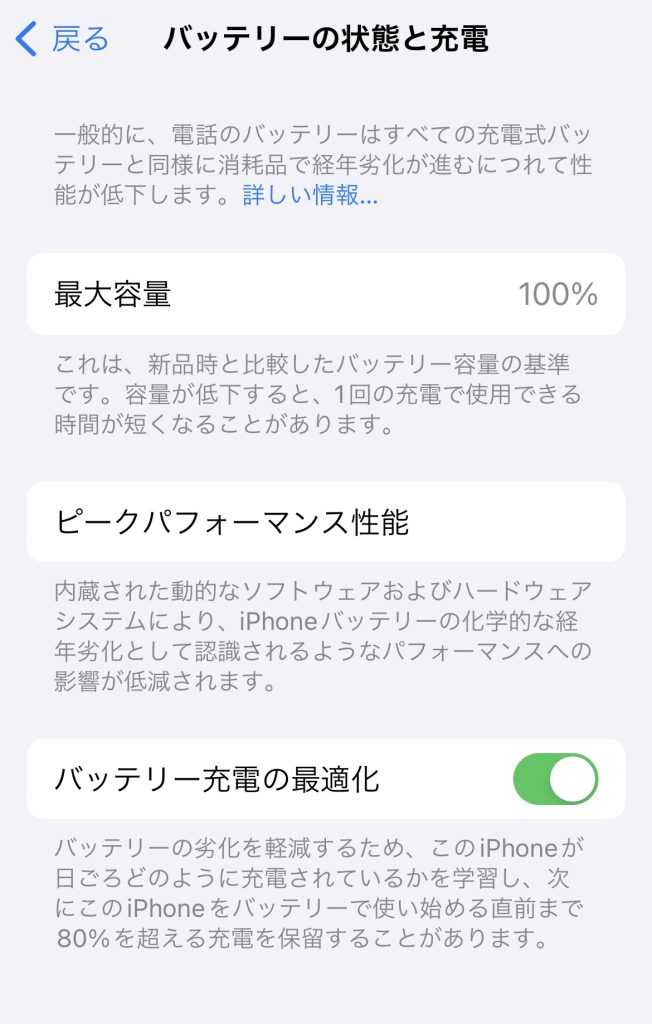 iPhone 14以前のモデルのバッテリーは、理想的な条件下でフル充電サイクルを500回繰り返した時に、本来の容量の80%を維持できるように設計されています。iPhone 15モデルのバッテリーは、理想的な条件下でフル充電サイクルを1,000回繰り返した時に、本来の容量の80%を維持できるように設計されています。